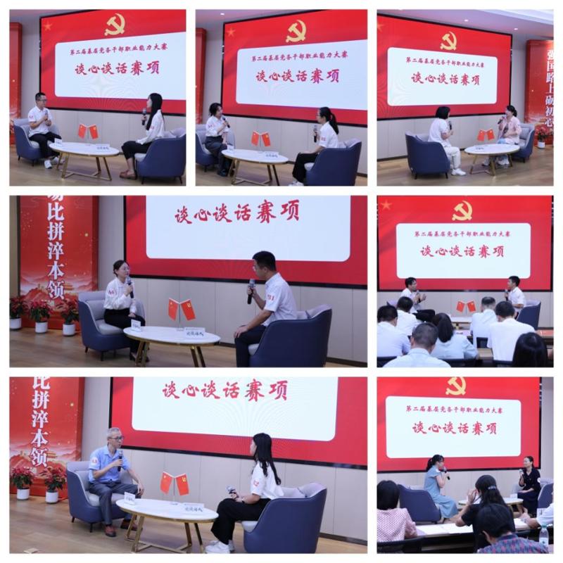 第三阶段“谈心谈话”赛项模拟基层党务工作真实场景,选手们分别作为谈话人与被谈话人角色完成情景对话,面对入党申请人的思想困惑精准引导,充分展现了党务干部的思想引导能力、沟通协调技巧与应急处置智慧,传递出党务工作的温度与担当。