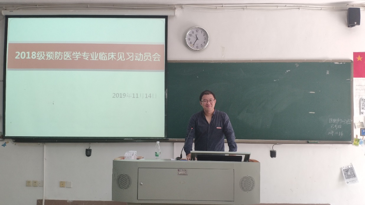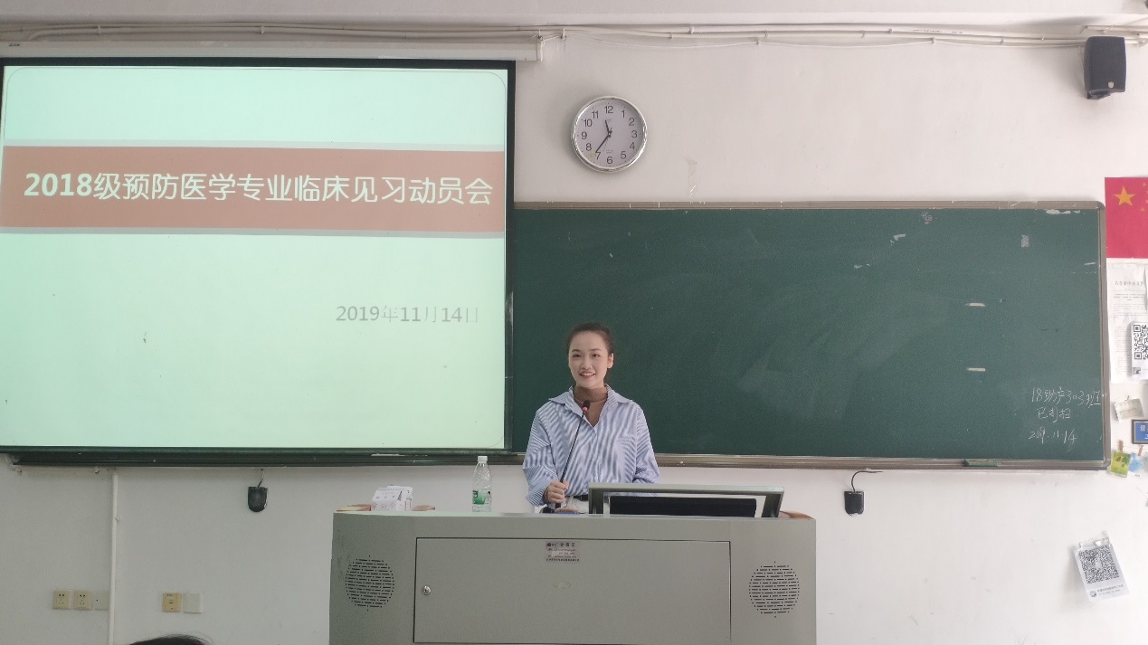 为了明确2018级预防医学学生临床见习的目的和意义,为引导学生做好见习工作,2019年11月14日中午,管理系预防医学教研室在教学楼111召开2018级预防医临床见习动员大会。此次见习大会由李宏老师主持,预防医学教研室全体专职教师参与,并特邀2017级两位临床实习队长参加会议。