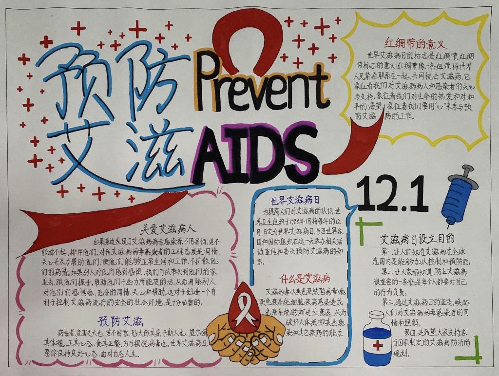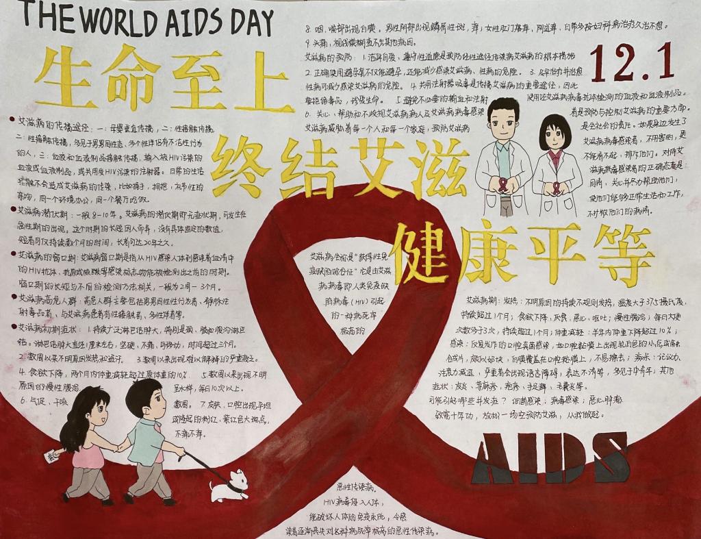 艾滋病是一种病死率极高的的严重传染病,目前还没有治愈的药物和方法,但它是能够预防的。2021年12月1日是第34个“世界艾滋病日”,为提高全校学生更加了解艾滋病的知识,由校团委、学工部和健康管理系主办,健康管理系“双带头人”教师党支部、预防医学教研室、健康管理系教研室和健康管理系团总支承办的“生命至上 终结艾滋 健康平等”校园防艾手抄报大赛于2021年11月13-23日顺利开展。