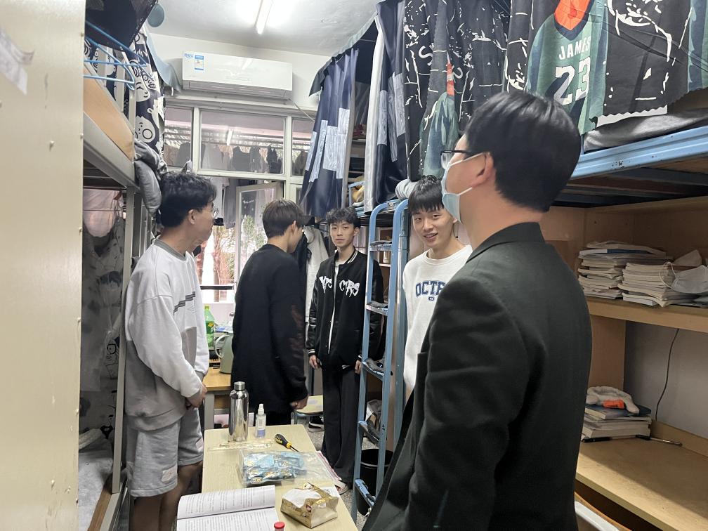 为进一步加固疫情防控和校园安全工作防线,营造安全稳定的校园环境。2022年4月1日下午,健康管理系党总支书记叶海带队深入一线,来到道山苑(7号楼和8号楼)、乌山苑(11号楼和12号楼)、烟山苑(17号楼)开展宿舍安全检查工作,重点就宿舍环境卫生、消防安全、疫情防控、用水用电安全等进行检查。