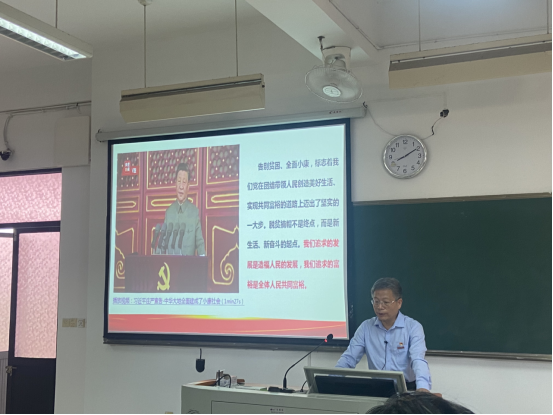 陈贞健以“在接续奋斗中扎实推进全体人民共同富裕”为主题。从“理解共同富裕的科学内涵”、“把握共同富裕的实践途径”、“认清共同富裕的未来征程”三个方面开展理论讲解。并结合学校实际介绍了关于学校对各类困难学生的帮扶工作,切实帮助其解决生活、学习和就业困难,我校始终重视在共同富裕背景下推动学校的高质量发展。