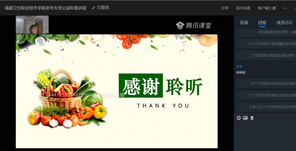 此次讲座因为疫情防控因素,采用线上授课的形式,线上观看人数达50余人次,“如何合理使用冰箱”成了讨论的焦点,大家表示收获较大。学员后续纷纷要求老师分享授课课件,表示要将讲座的内容揣摩吸收后在生活中运用起来。