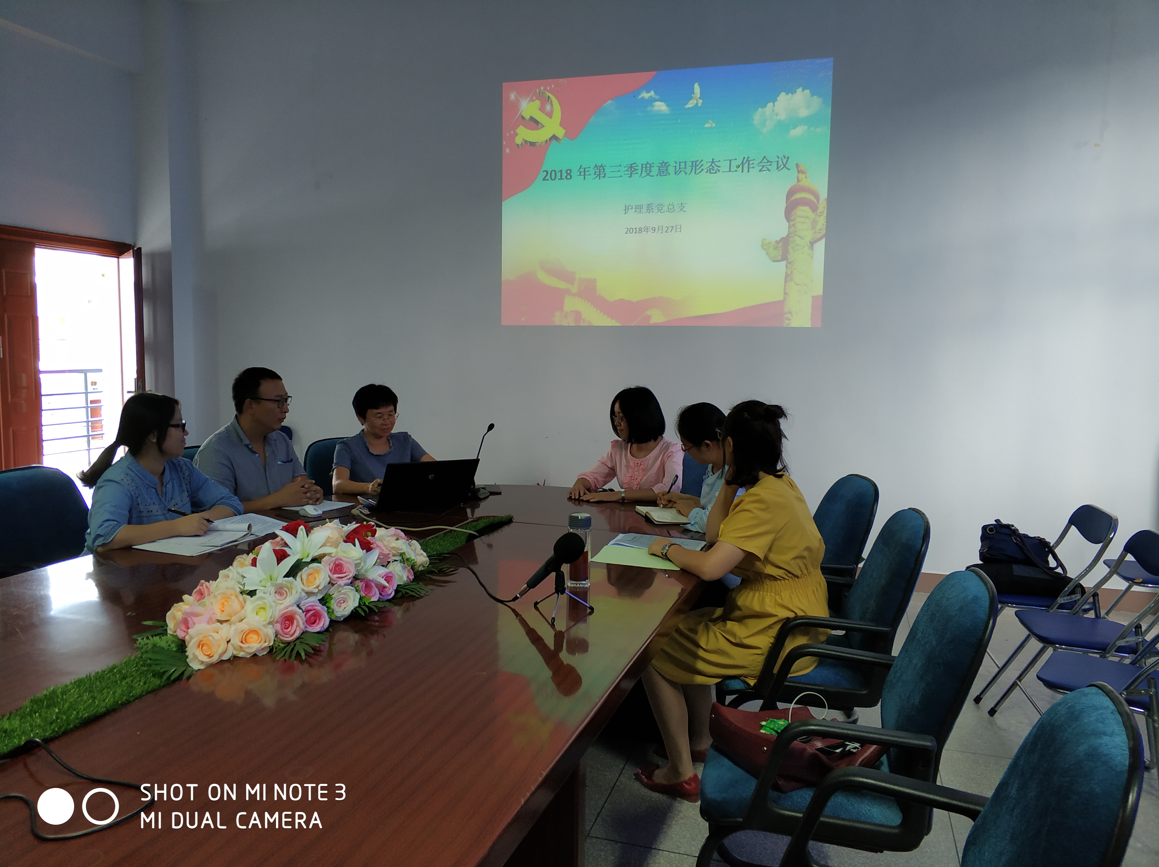 2018年9月27日上午,护理系党总支委召开2018年第三季度意识形态工作会议,护理系党总支谢涛书记主持会议,护理系团总支李宝珠书记列席了此次会议。