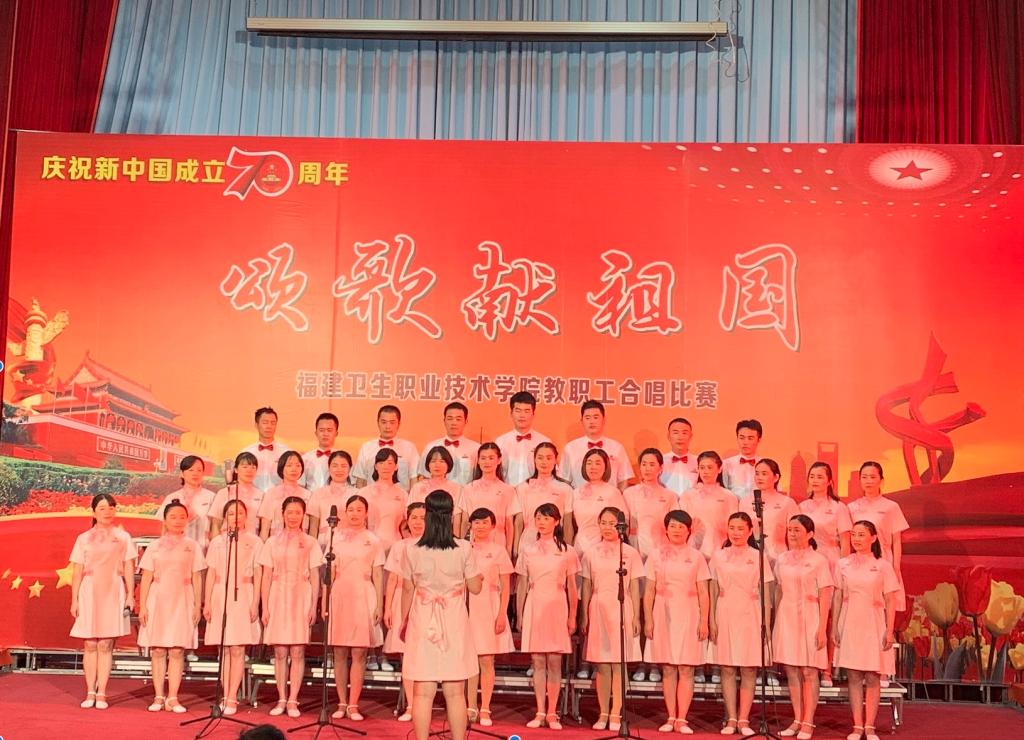 嘹亮的歌声,唤起中华儿女的自豪和向往;优美的旋律,奏响中华民族伟大复兴的壮丽乐章。9月26日,“颂歌献祖国”福建卫生职业技术学院庆祝新中国成立70周年教职工合唱比赛在学术厅拉开帷幕,由各部门各系部组成的8支参赛队伍用动听的歌声向祖国献上最美好的祝福。经过激烈角逐,护理系代表队合唱的歌曲《弹起我心爱的土琵琶》、《年轻的朋友来相会》荣获一等奖。