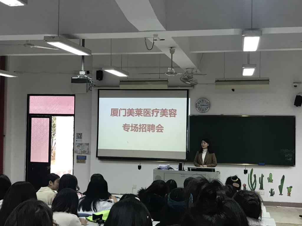 开展专场招聘会的单位有:福州馨尚母婴护理服务股份有限公司、厦门美莱医疗美容、厦门登特口腔医院、连江县闽川医院。各专场招聘会的用人单位分别介绍了本单位的情况、招聘情况、工资待遇情况、职业前景等,专场招聘会上学生与用人单位积极沟通交流、讨论,现场气氛热烈,求职者们都洋溢着笑容,充满自信。最后,各专场招聘会用人单位收集各位学生的简历,并进行面试。