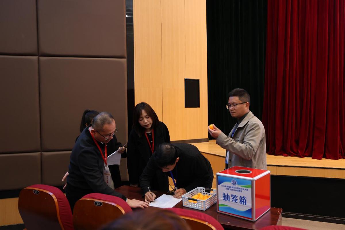 会上,裁判长刘亚莉解读了赛事规则,并就各参赛队有关疑问进行解答,赛道监督林建兴宣读了领队守则,我校护理学院院长肖春秀对竞赛期间有关注意事项进行说明。最后,各代表队抽取了选手检录抽签顺序号。