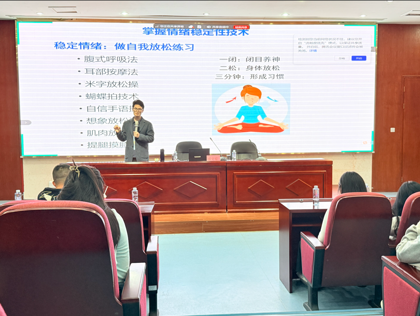 讲座聚焦实习期间常见心理困扰,从“好心态的内涵”切入,系统解析环境变化、任务压力、人际关系等多重挑战。丘文福结合医学实习生真实案例与研究数据,指出实习既是专业成长必经之路,也是心理韧性锻炼关键期。他强调,就业与经济压力、人际关系担忧、专业发展信心不足是实习生焦虑核心来源,其中就业压力相关焦虑检出率达93.4%,需重点关注,并通过互动提问引导学生认知自身潜在心理挑战。