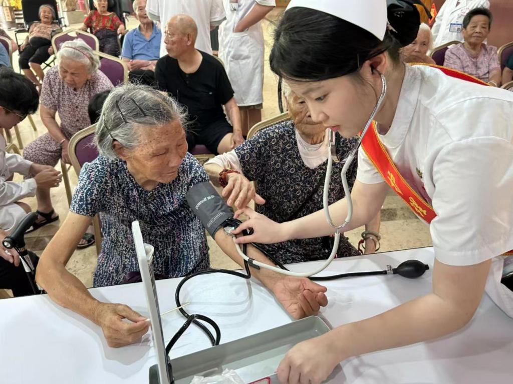 为全面贯彻落实习近平总书记的重要讲话精神,推进健康中国建设,引导大学生更好地了解国情、感知社会、服务群众,2024年8月10日上午,福建卫生职业技术学院护理学院学生第二党支部副书记林婕老师带领护理学院“梦飞天使”志愿服务队的队员们与福建医科大学附属第一医院的志愿者们共同前往泉州市泉港区刺桐红康养服务中心开展暖心义诊活动。