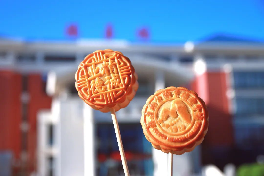 今年,学校组织各食堂推出印刻有校徽与校训LOGO的豆沙和凤梨口味月饼,以盲盒形式向8300多名在校FHCers免费派送。每款定制月饼都是颜值与口味并存,不仅传递着学校对同学们的关心祝福,也承载着学校的文化元素,这是独属于闽卫人的中秋福利。