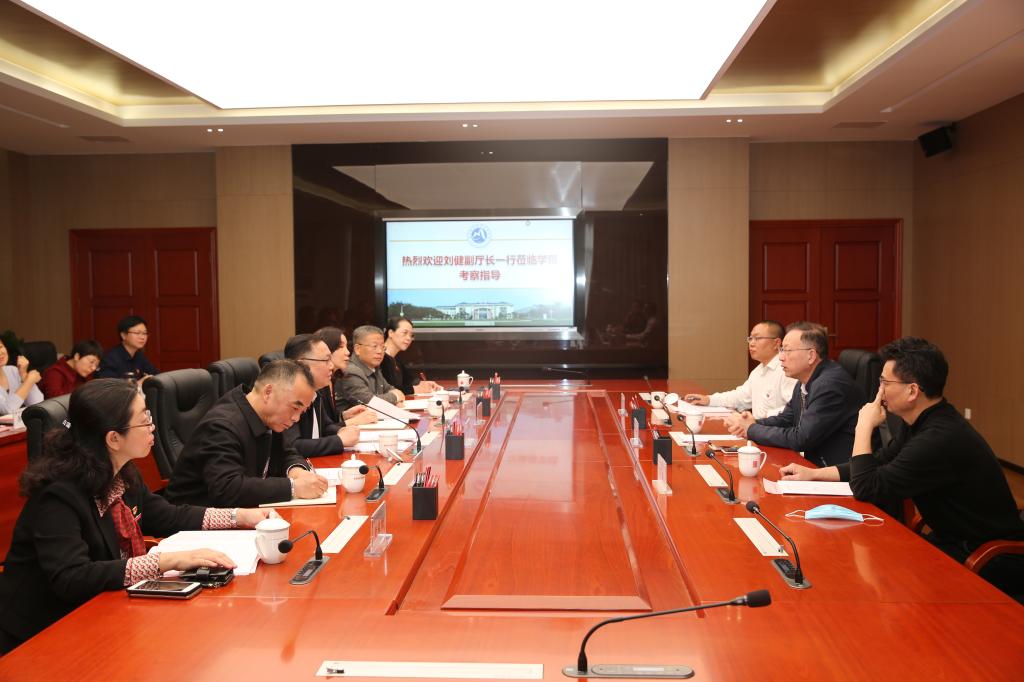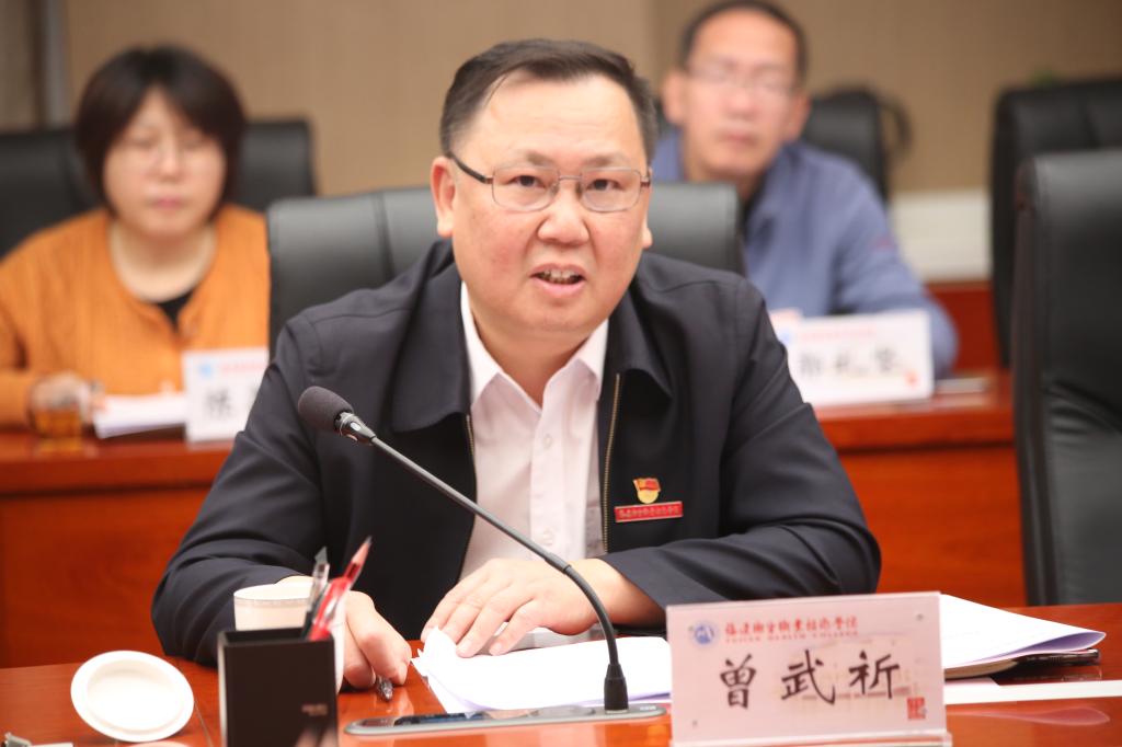 调研座谈会上,校党委书记曾武祈代表学校对刘健一行的到来表示欢迎,对省委教育工委、省教育厅一直以来关心支持学校的建设发展表示感谢,并就学校基本概况、近年来学校改革发展情况、学校“十四五”发展思路和期望省教育厅支持解决的事项作了汇报。