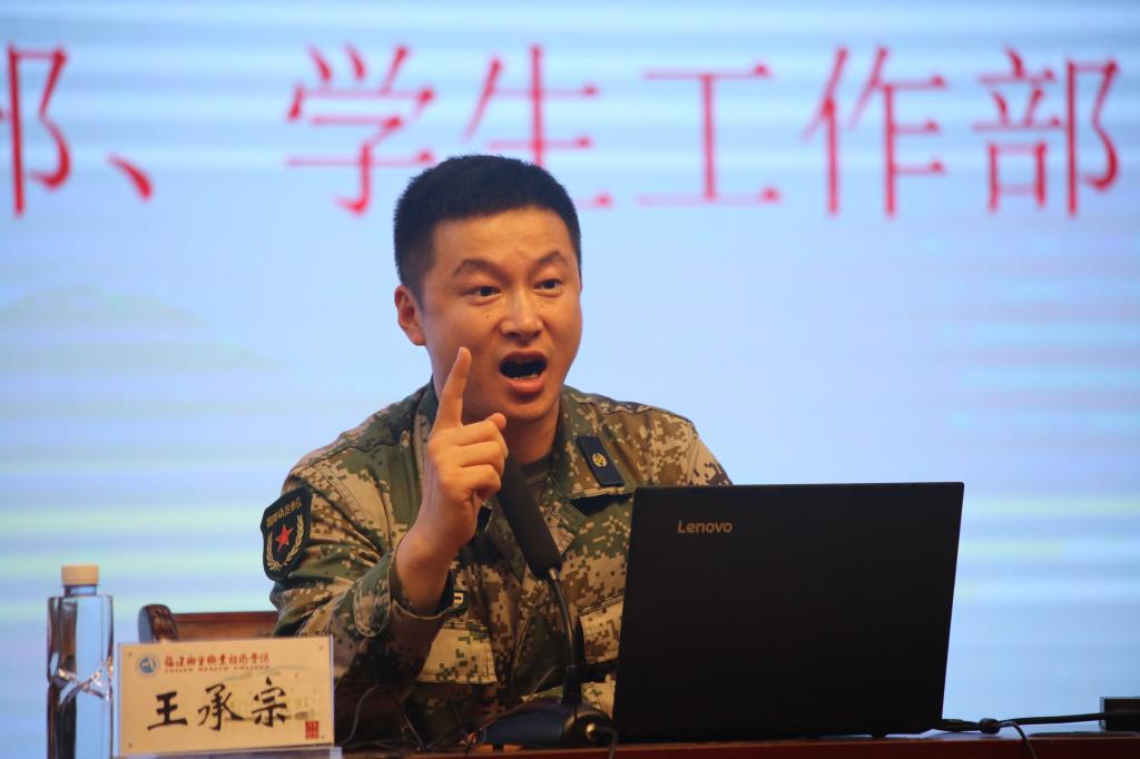 闽侯县人民武装部政工科科长王承宗现场高唱《好男儿就是要当兵》,引发全场同学的鼓掌呼应,王承宗提到大学生征兵的政策一年比一年好,他还分享了个人从2009年大学毕业至今当兵的体会,。以自身的经历鼓励同学们不要错过好时机。