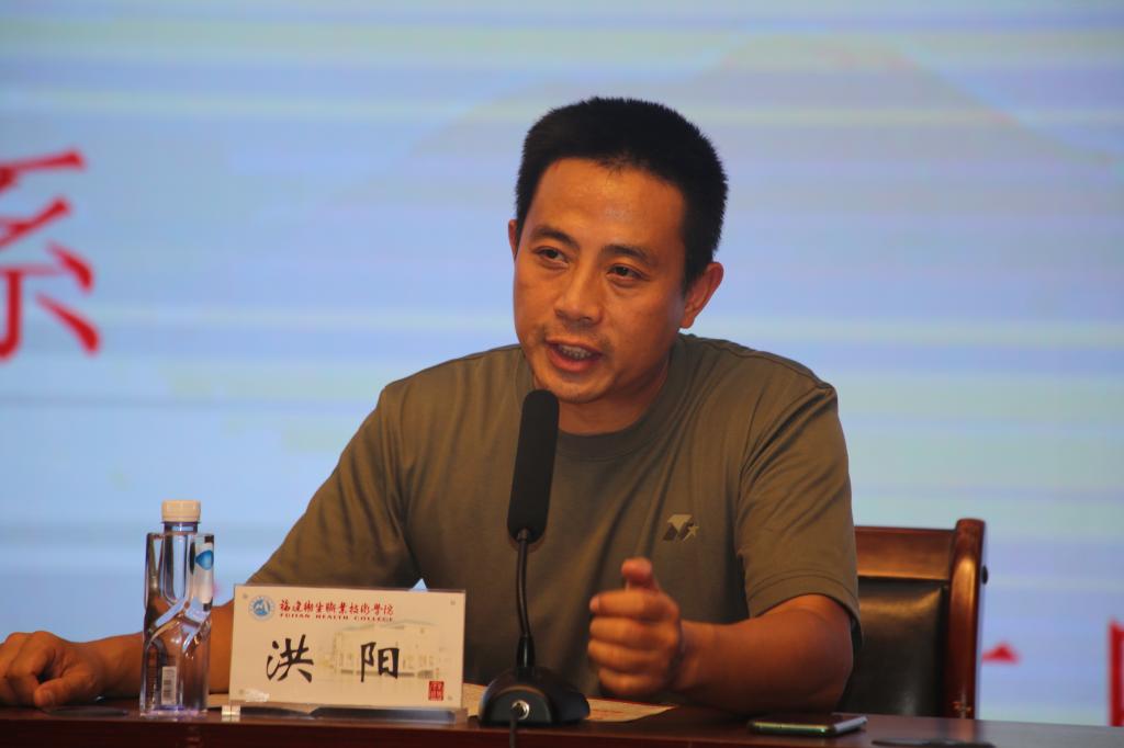 洋里乡武装部副部长洪阳为同学们讲述7月1日洋里乡给三位90多岁并且有50年党龄的老兵戴上徽章的感动场景,他详细地解读了大学生征兵政策、当地应征流程及优待政策,动员大学生投身绿色军营,追梦无悔青春!