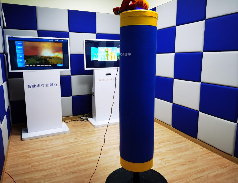 “宣”为疏导,“泄”为放出,“宣泄”即是把不良情绪通过疏导而释放出去,以此减轻或消除心理压力。目前宣泄室配置1个宣泄柱、1台智能击打宣泄仪和1台体感认知训练仪,来访者可以通过一些击打或体感游戏宣泄情绪,趣味性十足。