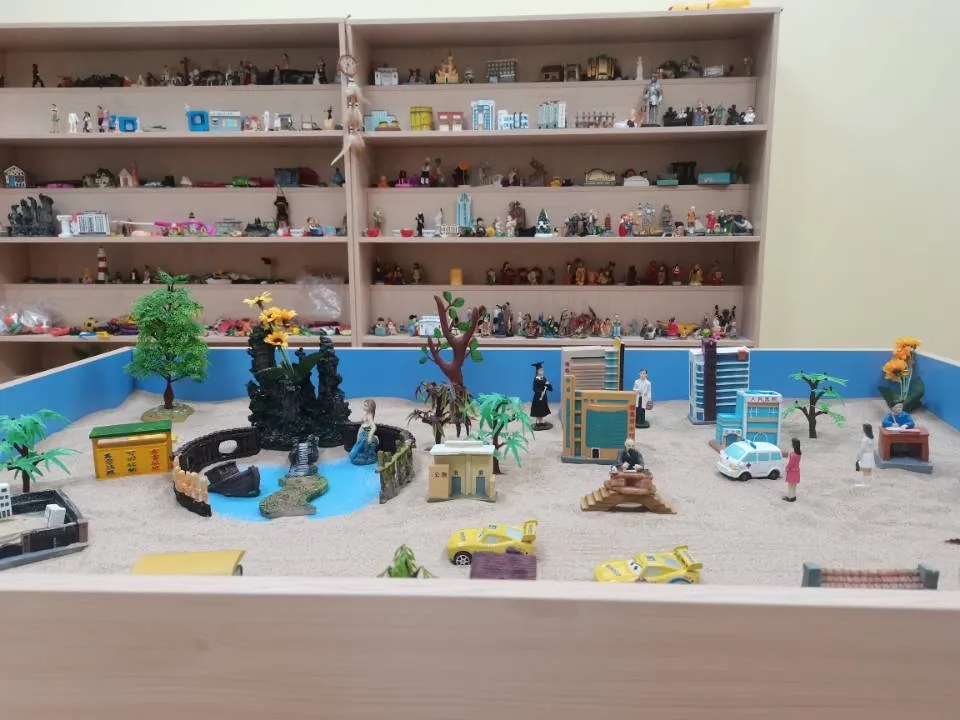 沙盘游戏又称为箱庭疗法,在咨询师的陪伴下,来访者可以自由地在沙盘内摆放沙具,通过这种形式来呈现自己的潜意识世界,使来访者的“自我治愈力”得以发挥,在沙子中找回孩童时的乐趣。目前心理沙盘室共有个体沙盘2个,团体沙盘1个,2000余件沙具。