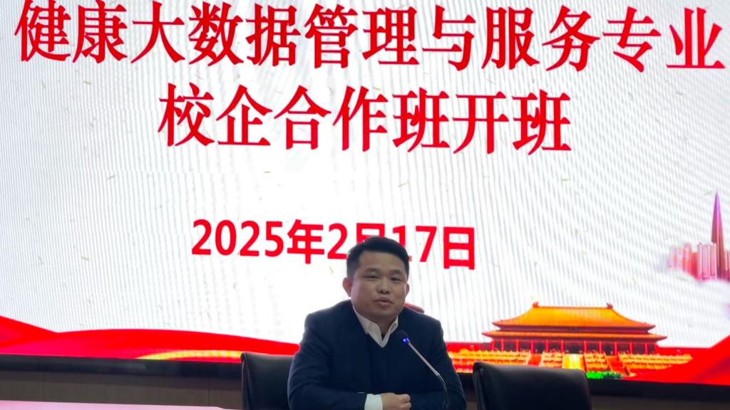 2月17日,我校第一届健康大数据管理与服务专业“校企合作班”开班仪式在国家东南健康医疗大数据中心隆重举行。福建元瑞信息科技有限公司总经理陈伟林、常务副总徐锦元、副总经理李昱、各部门负责人,学校党委副书记李美华,健康学院领导班子成员、健康大数据教研室专任教师、辅导员以及23级健康大数据管理与服务301班的学生共同参加开班仪式。