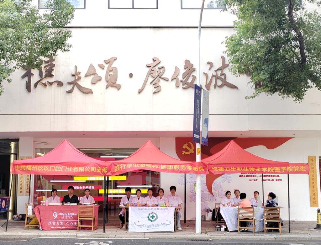 为践行廖俊波同志一心为民、实干担当的无私奉献精神,引导青年学生以廖俊波同志为榜样,汲取奋进力量、勇担时代使命,将优质健康服务送至社区居民身边,9月27日,医学院联合福州玖玖口腔及驿里社区,在通湖路廖俊波同志先进事迹展示馆前共同开展以“践行廖俊波精神,健康服务零距离”为主题的党建共建义诊服务活动。此次活动是医学院联合高校、企业、社区等各领域党组织构建服务共同体,力求实现党建引领与专业服务深度融合的一项重要举措。