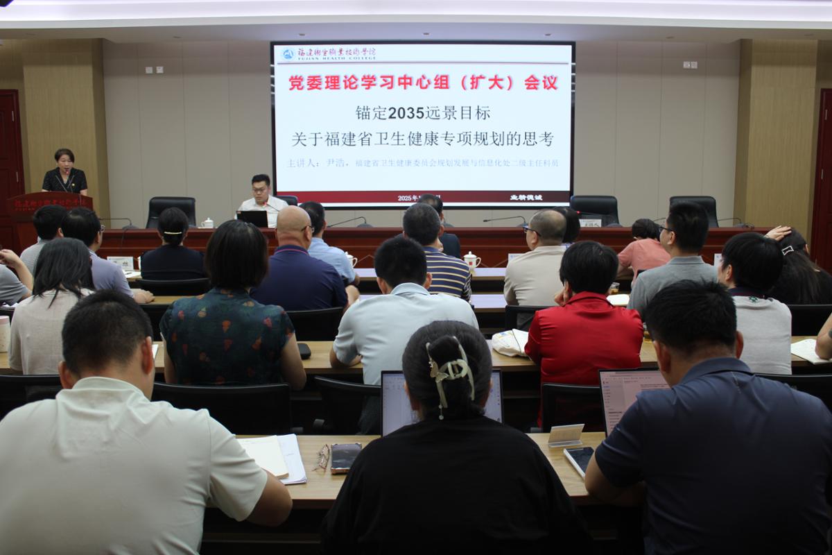 尹浩以《锚定2035远景目标——关于福建省卫生健康专项规划的思考》为题,展开了一场内容丰富、见解深刻的分享。他从宏观战略到微观路径,对福建省“十四五”时期卫生健康事业发展所取得的显著成就进行了系统的梳理。同时,尹浩博士详细剖析了国家“十五五”时期卫生健康发展阶段的战略部署和具体安排,以及我省卫生健康事业发展专项的核心目标、重点任务和创新思路。这些深入浅出的分析,不仅为我校拓宽“十五五”规划编制工作思路提供了极具启发性的见解,更为我校如何更好地服务于福建省卫生健康事业发展、如何培养契合服务区域经济和卫生健康需求的技能人才,带来了重要的思考方向和实操指引。