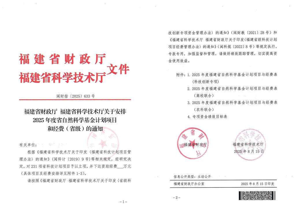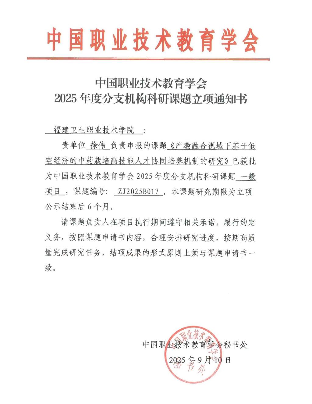 近日,2025年度中国职业技术教育学会科研课题和福建省自然科学基金项目立项结果相继公布,我校科研工作再传捷报:徐伟教授的课题获中国职业技术教育学会科研课题立项,陈文倩、吴康承老师的项目分别获得福建省自然科学基金面上项目、创青项目立项。