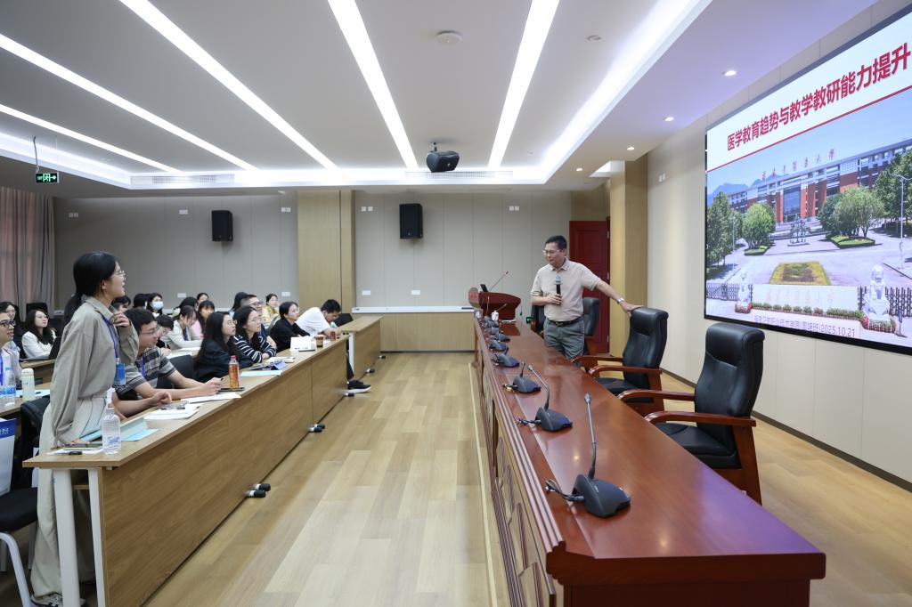 当前,医学教育正面临深刻变革,从以知识传授为中心向以能力培养为导向转变,智慧医疗、人工智能、跨学科融合等新兴技术与理念不断重塑医学人才培养模式。面对这一系列挑战与机遇,提升教师的教学设计能力、课堂组织能力及教育研究水平已成为推动学校高质量发展的关键环节。本次讲座围绕医学教育的最新趋势,深入剖析教学设计创新、教研项目申报、教学竞赛备赛等关键环节,结合典型案例,为我校教师提供可借鉴、可操作的实践路径。讲座内容兼具前瞻性与实用性,旨在激发教师教学热情,增强教研意识,推动课堂教学质量持续提升。