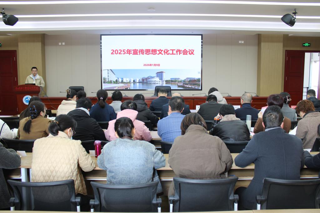 党委副书记李美华作学校年度宣传思想文化工作报告,全面总结2025年学校宣传思想文化工作,分析当前学校宣传思想文化工作的不足,并安排部署2026年的工作。李美华指出,2025年学校深化理论武装,筑牢理想信念根基;打造优质精品课程,深化思政育人实效;厚植校园文化底蕴,增强文化育人浸润作用;深化实践育人内涵,激发青年使命担当精神;压实意识形态责任,筑牢安全思想防线;强化宣传阵地管理,提升新闻舆论引导效能;凝聚多方协同合力,筑牢宗教渗透防控屏障。她强调2026年做好宣传思想文化工作,要健全跨部门协同机制,凝聚“大宣传”育人合力;强化网络队伍建设,筑牢意识形态阵地;深化思政育人改革,打造特色育人品牌。