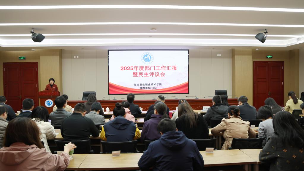 为全面总结2025年度办学治校成效,科学谋划新一年发展蓝图,1月15日,我校在厚德楼六楼会议室召开2025年度部门工作汇报暨民主评议会,校领导班子全体成员、中层干部、教师代表共105人参加会议。会议由校党委副书记李美华主持。