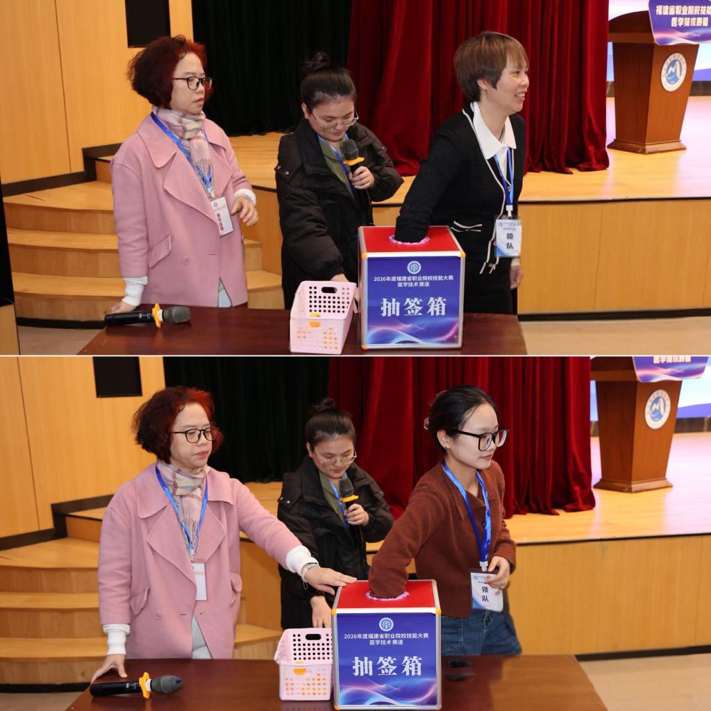 1月16日下午,由福建省教育厅等八部门联合主办、我校承办的2026年度福建省职业院校技能大赛医学技术赛道(高职组)在我校正式拉开帷幕。来自全省8所院校、15支代表队共55名选手齐聚一堂,将在未来几天展开专业技能与职业素养的激烈角逐。