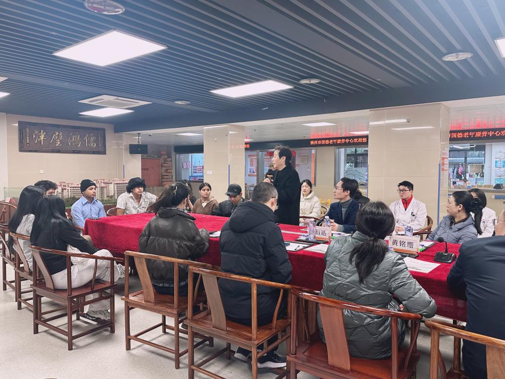 为进一步提高留学生“医-养-康-护”四位一体服务能力,培养兼具跨文化沟通力与创新素养的复合型医养人才,2月1日,8名厄瓜多尔留学生在校领导及教师的陪同下,走进福州国德老年康养中心,开启为期一个月的跨文化社区志愿服务实践。活动首日以“爱在国德·无国界”主题交流会破冰,双方搭建起智慧养老创新的桥梁。