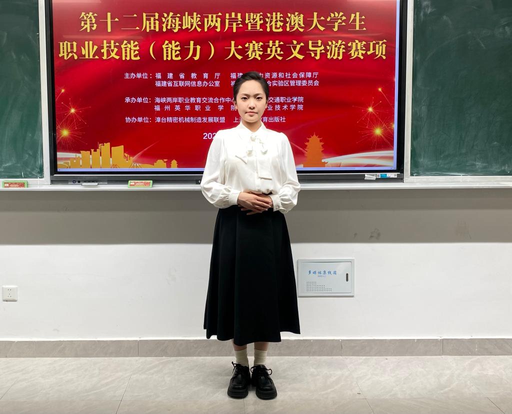 近日,由福建省教育厅、福建省人力资源和社会保障厅等单位联合主办的第十二届海峡两岸暨港澳大学生职业技能大赛圆满落幕。在英文导游竞赛中,我校护理专业学子雷冰燕(指导教师:韩小清)凭借扎实的专业功底、流畅的英语表达和出色的应变能力,以总分第6名的成绩荣获省级三等奖,为我校争得荣誉。