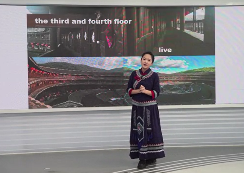 雷冰燕同学以“永定客家土楼:东方古城堡的千年智慧”为主题,在景点推介环节通过短视频与图文结合的方式,生动呈现土楼的建筑奇观与文化内涵。她以“世界文化遗产”“吉尼斯纪录保持者”等亮点切入,图文部分则以时间轴形式梳理土楼发展史:从西晋“永嘉之乱”客家先民南迁,到宋代“防御性聚落”的雏形,再到明清时期“圆楼”“方楼”的成熟形态,充分展示土楼不仅是世界上独一无二的、神话般的山区建筑模式,更是我们中华文化瑰宝。在导游讲解环节,她以“承启楼——土楼之王”为案例,从建筑结构、防御功能到聚族而居的宗族文化,层层递进展开论述。她特别提到土楼“中轴线对称”“内通廊式平面”等设计,既体现中原汉文化礼制传统,又融合闽西南地理特征,展现了客家人“天人合一”的生存智慧。
