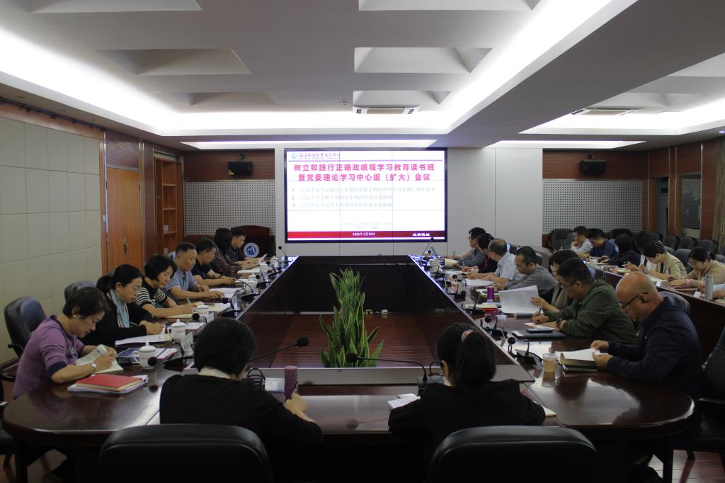 4月29日,我校召开树立和践行正确政绩观学习教育读书班暨党委理论学习中心组扩大会议。会议由校党委书记曾武祈主持,党委领导班子成员、全体中层正职(含主持工作)参加学习。