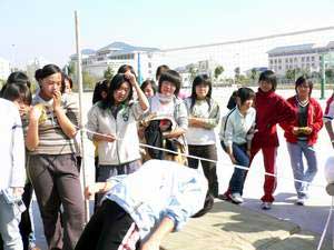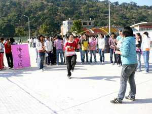 2007年2月6日下午阳光明媚,由福建卫生职业技术学院学生会主办,药学系学生会承办的福建卫生职业技术学院“迎新春”趣味活动在院体育场举行,学工处郑力宏处长、团委邱滚忠老师、药学系欧春木书记等领导出席,邱滚忠老师代表学院讲了话,他带来了院领导的关怀,对药学系承办此次活动所付出的辛苦表示感谢,并预祝活动圆满成功。药学系欧春木书记就此次活动的筹备做了讲话。此次活动有来自各系部的15支代表队,345名运动会参加,活动的项目有情牵一线、移砖过河、齐心协力、可乐保龄球、腰力大比拼、团体拔河等,各系部组织了强有力的啦啦队现场比拼,活动热浪一潮高过一潮。冬天的太阳虽然不烈,但运动员个个仍汗流浃背,此次活动还吸引了数千名的体育爱好者。这是我院在紧张的期末复习考试期间进行的又一次心情大调节,此类活动深受学生的喜爱。
