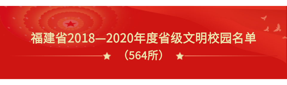 省委文明办发布《福建省2018—2020年度省级文明城市、文明村镇、文明单位、文明校园、文明家庭名单》,其中文明校园564所,一起来看看——