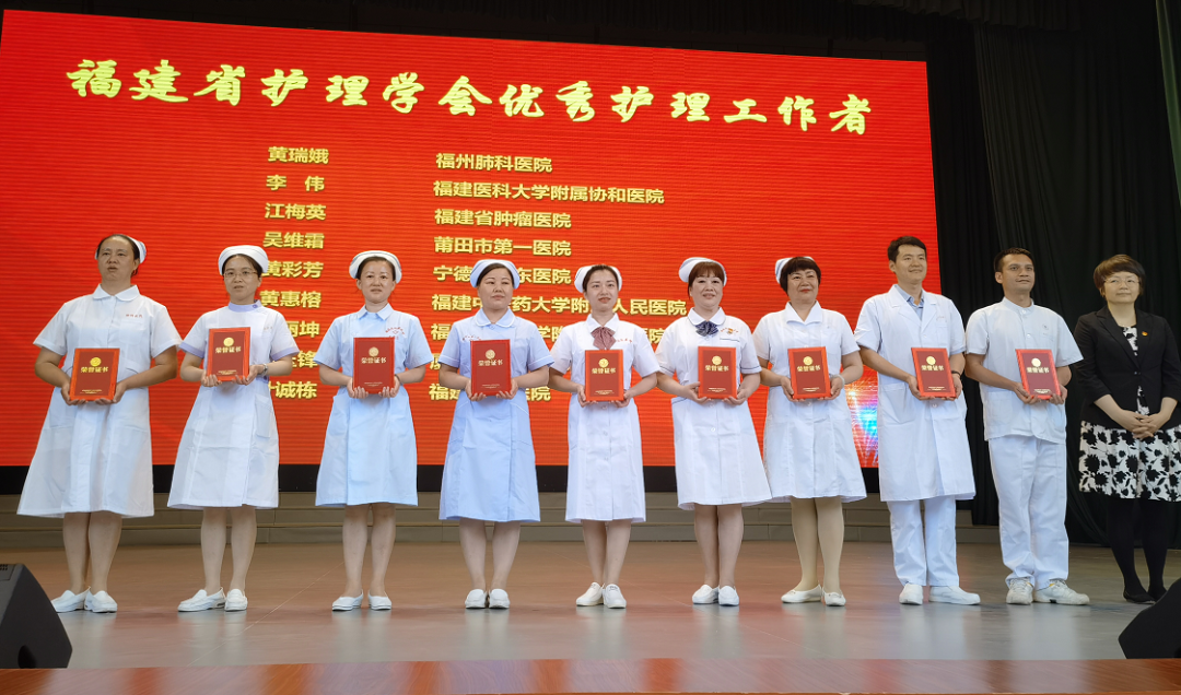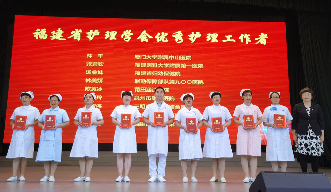 会上共有68名护士以及29家继续护理学教育先进单位受到了表彰。其中福建省“最美护士”15名、福建省优秀护理工作者18名、福建护理科技奖8名,“驼人杯”护理创新发明奖11名、福建省“小鹰”护理基金奖16名。