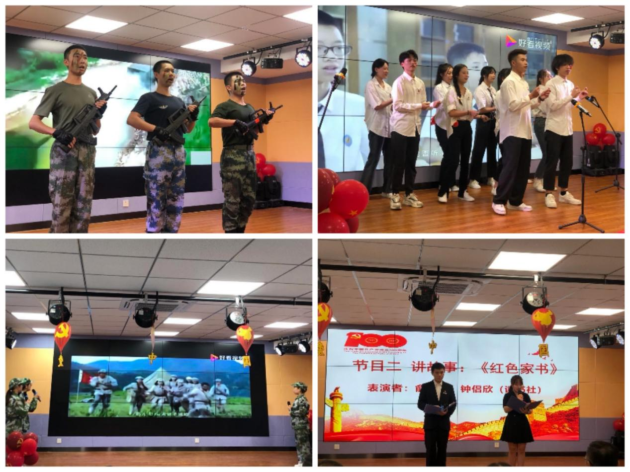 寻道——百年望道守初心。从延安窑洞的灯光,到三大战役的胜利;从城楼庄严的宣告,到南方谈话带来的改革春天;从毛泽东思想,到中国特色社会主义理论体系的生动实践。100年的风雨征程,100年的辉煌历史,党史上的每一页都值得讴歌和赞颂。直属马克思主义学院党支部全体党员教师和社团学生们寓教于乐,将政治性、思想性与艺术性相融合,以诗歌朗诵、影视配音、故事讲述、歌曲颂唱、军训操练等形式精彩呈现七个篇章,其间穿插党史知识的现场抢答,共谱“七一”建党乐章。