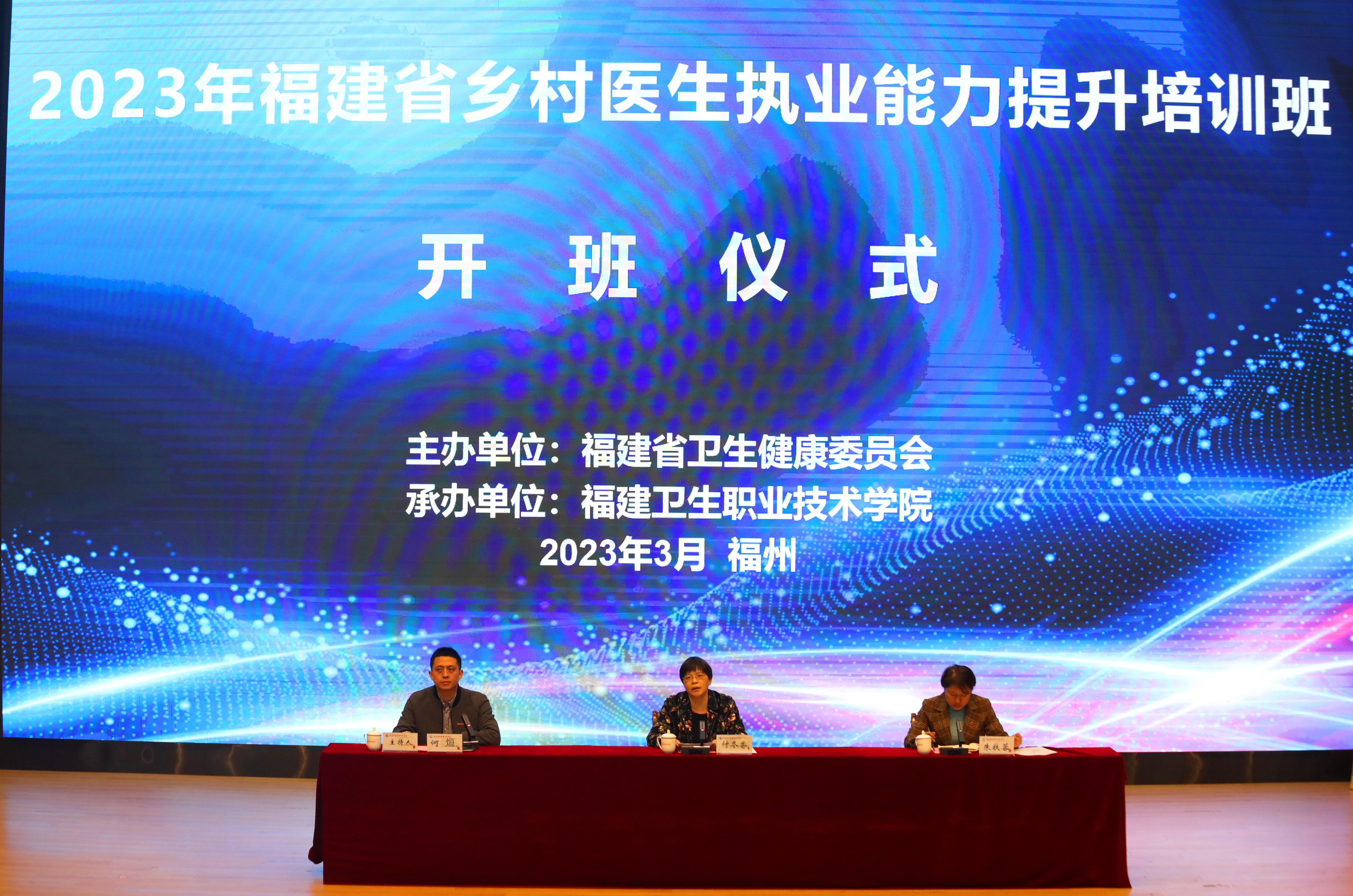 3月27日,2023年福建省乡村医生执业能力提升培训班开班仪式在福建卫生职业技术学院学术厅举行。福建省卫生健康委员会(以下简称省卫健委)基层处处长付冬香、学校副校长朱扶蓉出席仪式并讲话。护理学院、医学院、健康管理系等院系负责人及340名乡村医生参加开班仪式。开班仪式由继续教育学院副院长何烜主持。