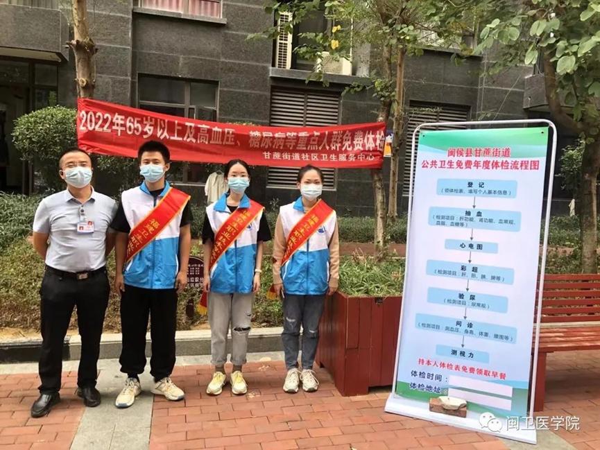 2022年10月22日至23日,医学院组织滨江社区卫生体检志愿服务。协助医院工作者为小区65周岁以上或伴有高血压、糖尿病的常住居民提供免费健康体检。