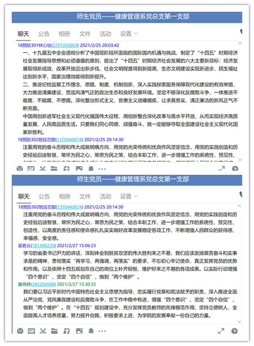 2020年2月25日健康管理系党总支第一支部全体党员在线学习以下三个文件:1、福建省十三届人大五次会议和省政协十二届四次会议和省政府第一次全体会议精神2、《福建开展“再学习、再调研、再落实”活动!尹力提出具体要求》3、中国共产党福建省第十届纪律检查委员会第六次全体会议决议。与会党员们认真学习,积极发表学习观点。