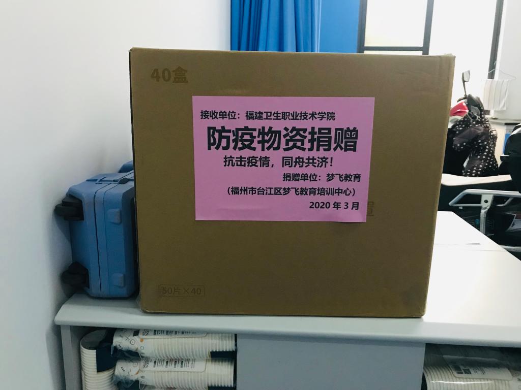 3月8日下午,福州市台江区梦飞教育培训中心雪中送炭,专程向我院捐赠口罩2000个,让这个特殊的春天又增添了一份浓浓的温情。目前已有多家公司及师生向学院捐赠防疫物资,风雨同舟,感谢你们的暖心之举。
