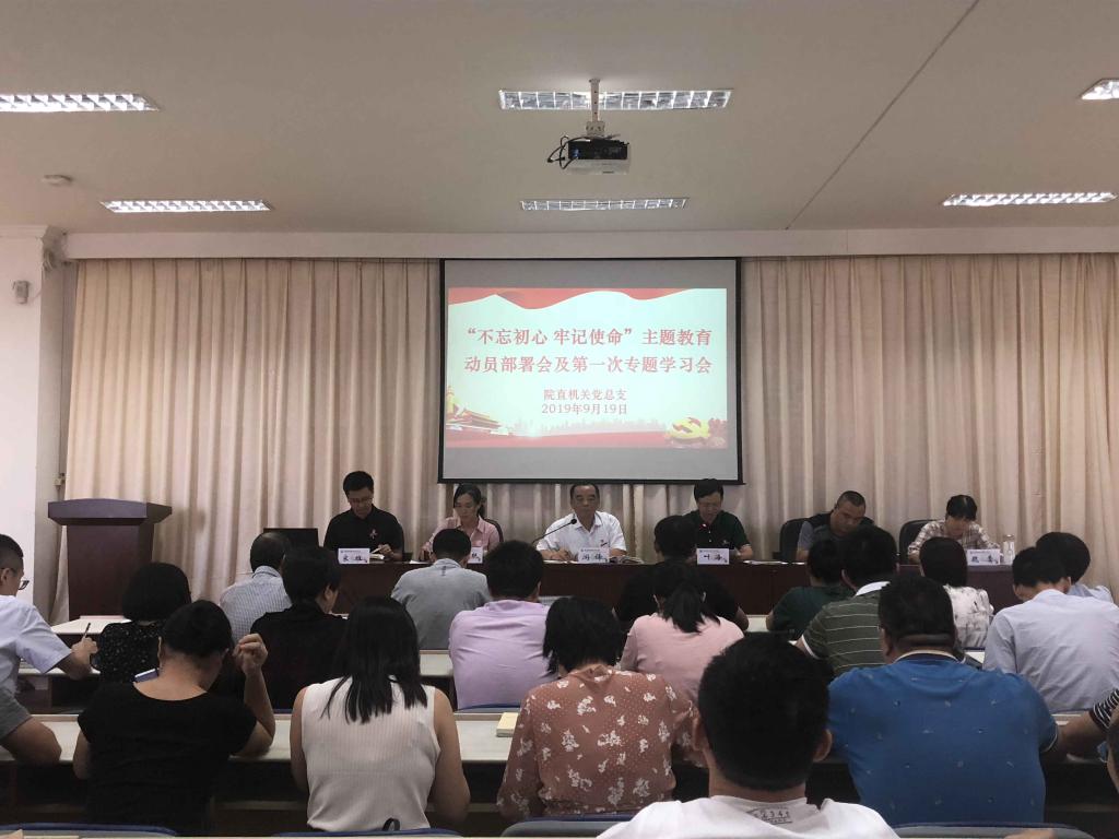 9月19日下午,院直机关党总支在行政楼六楼会议室召开“不忘初心、牢记使命”主题教育动员会暨专题二学习会。参加会议的有:学院巡回指导四小组组长游锋、成员林桂松和许慧琼同志,以及院直机关党总支全体党员。院直机关党总支书记叶海主持会议。