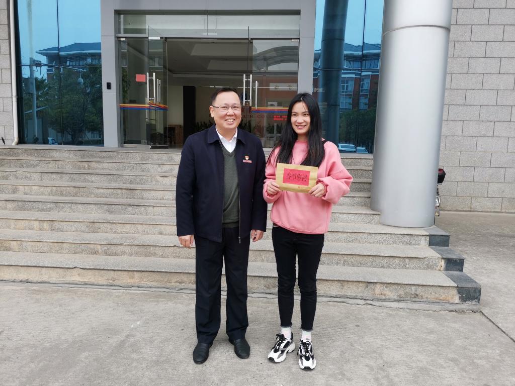1月15日,院党委曾武祈书记关心慰问护理系学生困难党员林舒婷同志,为其送上新春祝福。