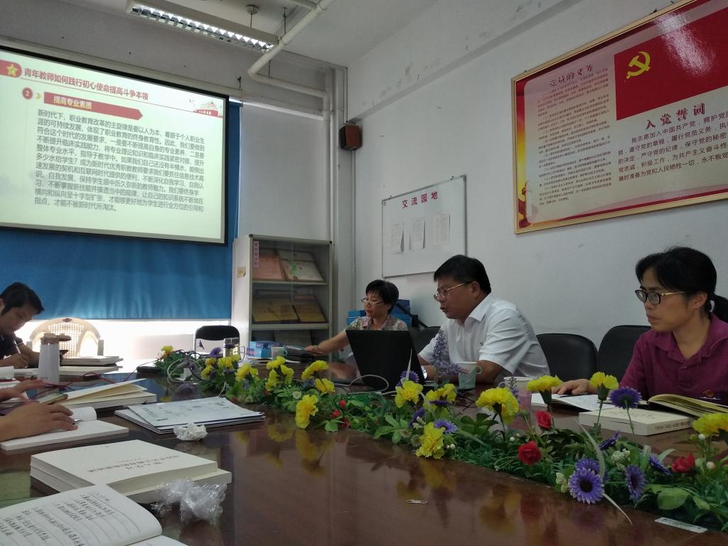 围绕“践行初心使命,增强斗争意志”这一专题,苏友新院长上了一堂题为“不忘教育初心,牢记育人使命”的党课。他从“新时代共产党员的初心”、“新时代青年的初心和使命”、“青年教师如何践行初心使命提高斗争本领”三部分展开党课内容。