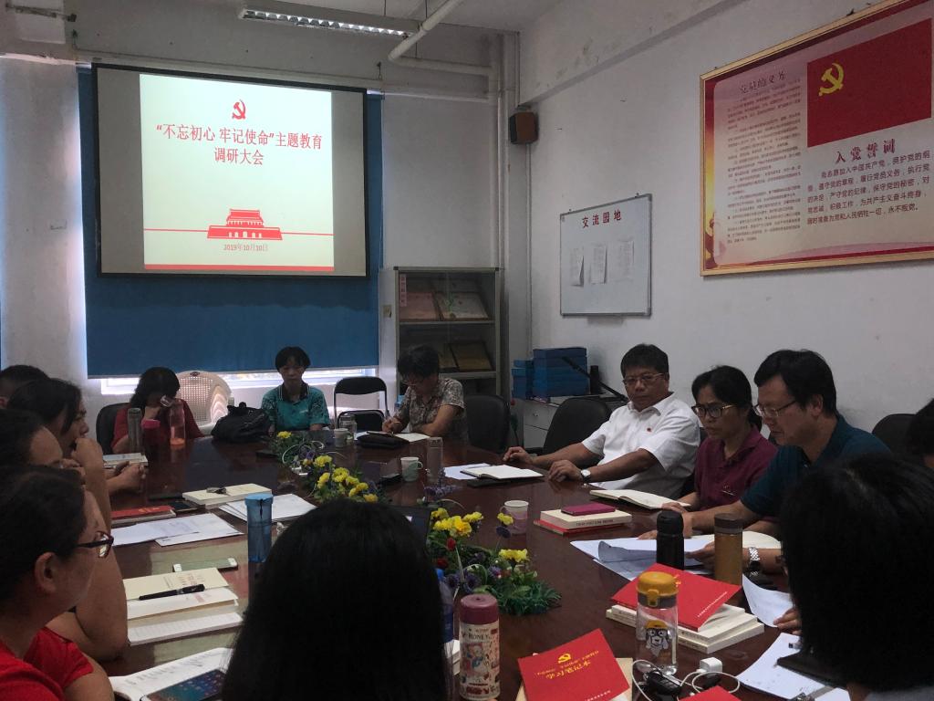 根据《中共中央关于在全党开展“不忘初心、牢记使命”主题教育的意见》(中发〔2019〕19号)和《中共福建省委印发<关于开展“不忘初心、牢记使命”主题教育的实施方案>的通知》(闽委〔2019〕29号)、《中共福建省委教育工委关于印发<中共福建省委教育工委开展第二批“不忘初心、牢记使命”主题教育工作方案>的通知》(闽委教组〔2019〕14号)的部署安排,2019年10月10日下午,苏友新院长和院办叶海主任一行来基础部开展“不忘初心、牢记使命”主题教育调研工作。会议由基础部阮秋容副主任主持,基础部教研室主任等教师代表参加了调研会议。