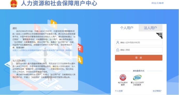 人力资源和社会保障用户中心登录页面图示