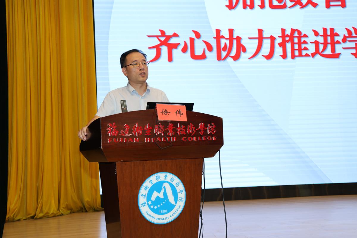 徐伟在总结发言中表示,学校具有浓厚的医学氛围和历史积淀,但在新时代背景下也面临着转型的压力,对此要保持足够的清醒,更要有坚定的信心。他强调,全校各部门要紧紧围绕“办学能力高水平,产教融合高质量”的双高要求,统一思想,凝聚共识,砥砺深耕,积极推进新一轮双高建设,助力学校高质量发展。
