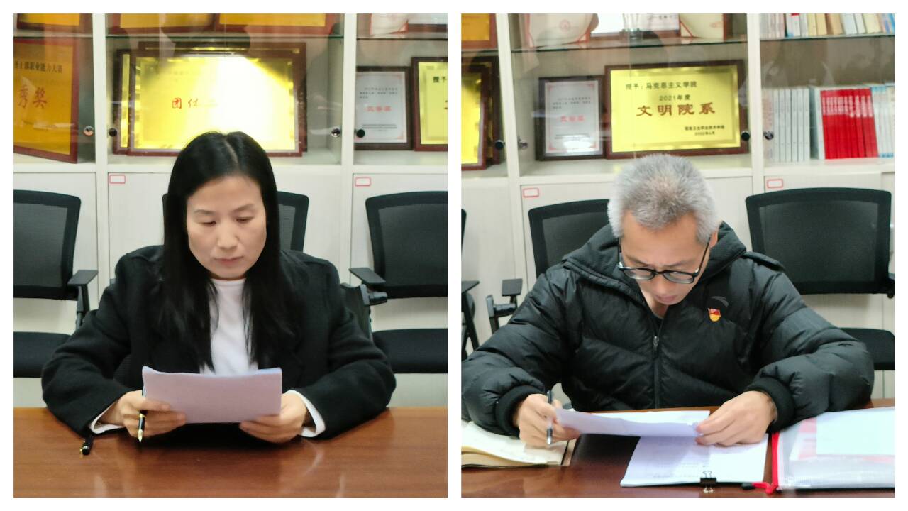会议最后,马院党总支委员结合两个党支部书记述职情况和日常工作表现,进行了民主测评。