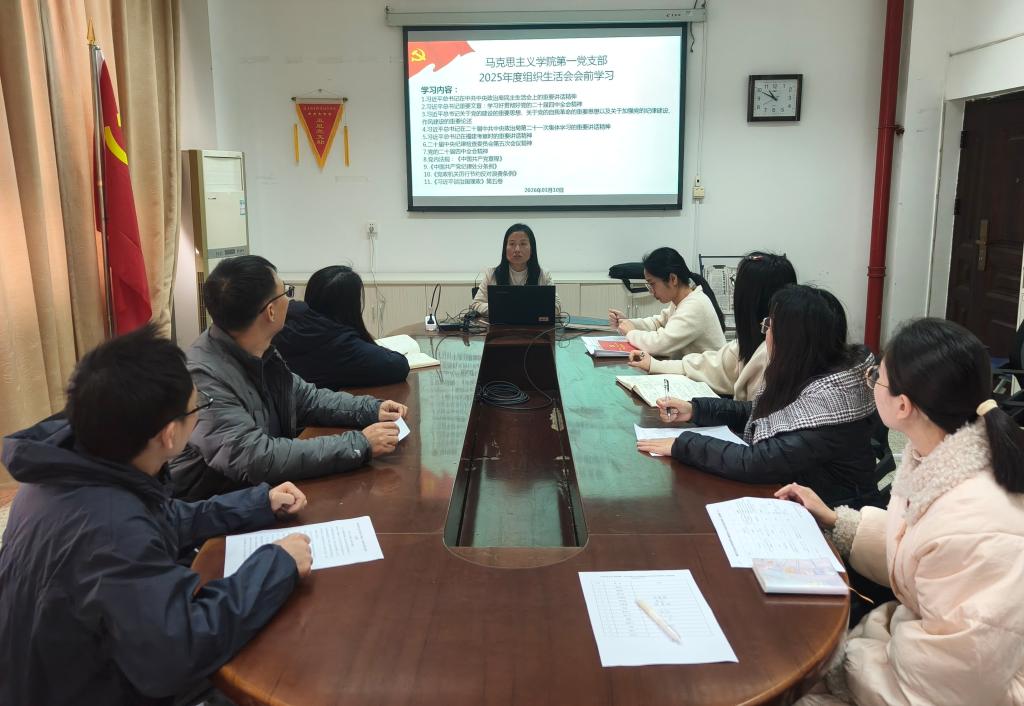 2026年3月12日,马克思主义学院第一党支部在厚德楼107会议室召开2025年度组织生活会暨民主评议党员大会。校党委书记曾武祈以普通党员身份参会,党支部书记来朋珍主持会议,支部全体党员参加。