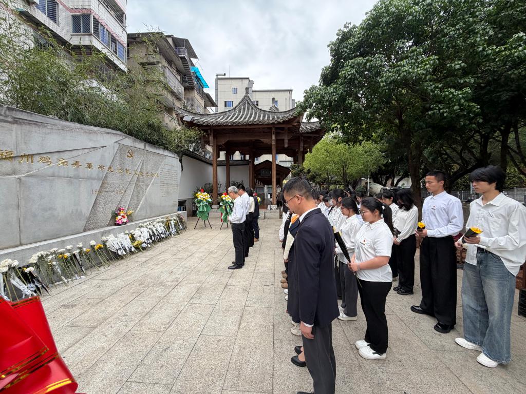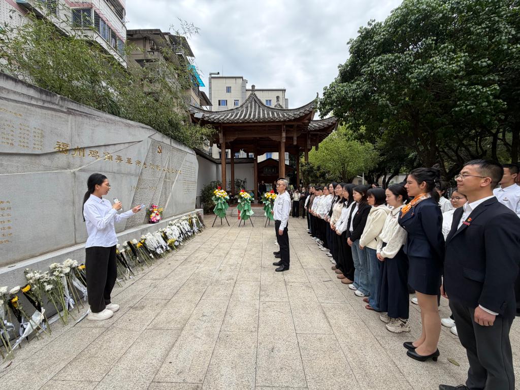 全体师生步行前往素有“福州雨花台”之称的鸡角弄纪念公园。在烈士纪念碑前,全体默哀一分钟,师生代表敬献鲜花,学生代表现场宣讲,用青年之声讲述英烈故事。随后全体瞻仰革命烈士纪念长廊,在一段段感人至深的事迹、一个个镌刻在石碑上的名字前驻足凝望,接受了一场深刻的革命传统教育洗礼。