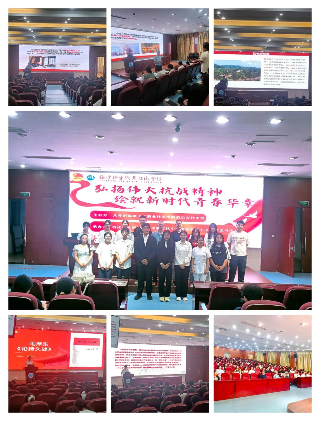 为深入贯彻落实习近平总书记关于抗战的系列重要讲话和重要指示批示精神,2025年10月9日,习近平新时代中国特色社会主义思想读书社在“一站式”学生社区笃行楼四楼报告厅举办主题为“弘扬伟大抗战精神 绘就新时代青春华章”的宣讲活动。本次活动由校团委社团部主办,读书社承办,胡济林、江洪2位老师担任指导老师,共有近217名学生到现场参与了此次活动。