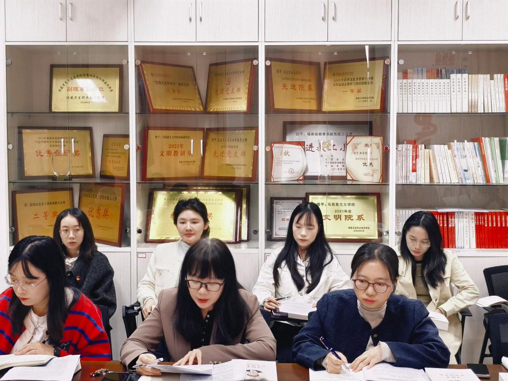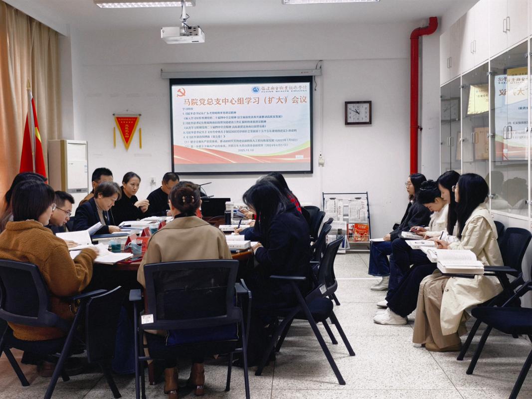 2025年11月19日,马克思主义学院党总支在厚德楼107会议室开展理论学习中心组(扩大)会议,会议由马院党总支书记熊美兰主持,朱扶蓉副校长莅临指导。