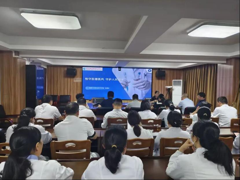 2025年9月24日,应晋安区卫健委邀请,党支部书记来朋珍以“恪守医德医风 守护人民健康”为主题,为区总医院及各基层单位负责人进行专题授课,系统阐述了医德医风建设的理论内核与实践要求,为医务人员明确了职业操守的航标。次日,支部教师党员刘宗永深入晋安区中医院暨鼓山镇卫生院,面向一线医务人员开展同主题深度培训。课程结合历史脉络与鲜活案例,从“知、信、行”层面进行生动阐释,播撒医德规范的“思想火种”,引发强烈共鸣。参训人员纷纷表示,要将学习成果转化为行动自觉。系列培训有效强化了思想引领,为营造风清气正的行业环境提供了坚实的理论支撑。